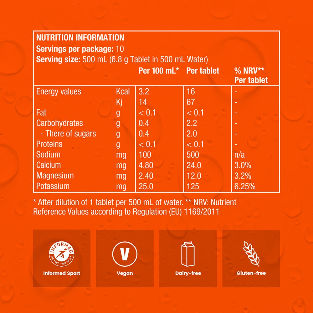Една таблетка в 500 мл вода осигурява 1000 мг натрий на литър – точно толкова, колкото ти трябва, за да избегнеш крампи, главоболие и загуба на концентрация.